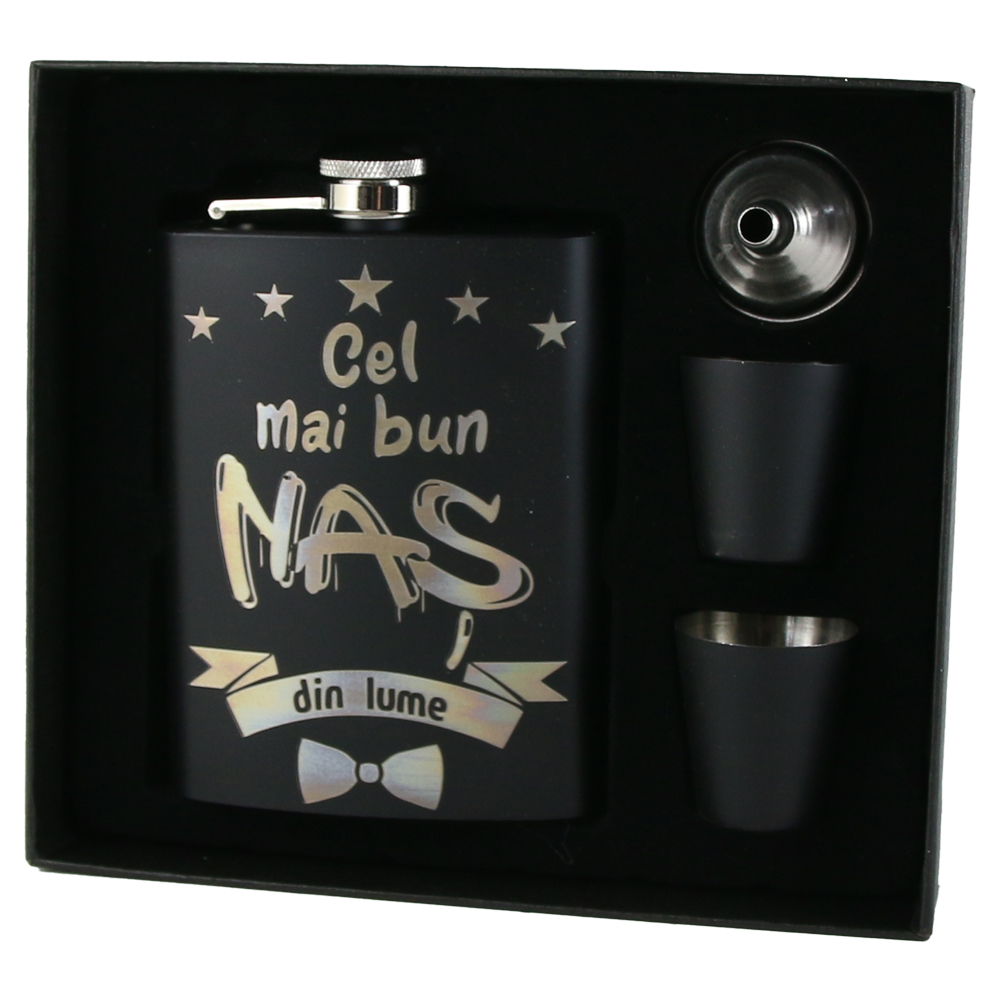 Set cadou „Cel mai bun Nas din lume”, Plosca cu palnie si 2 pahare