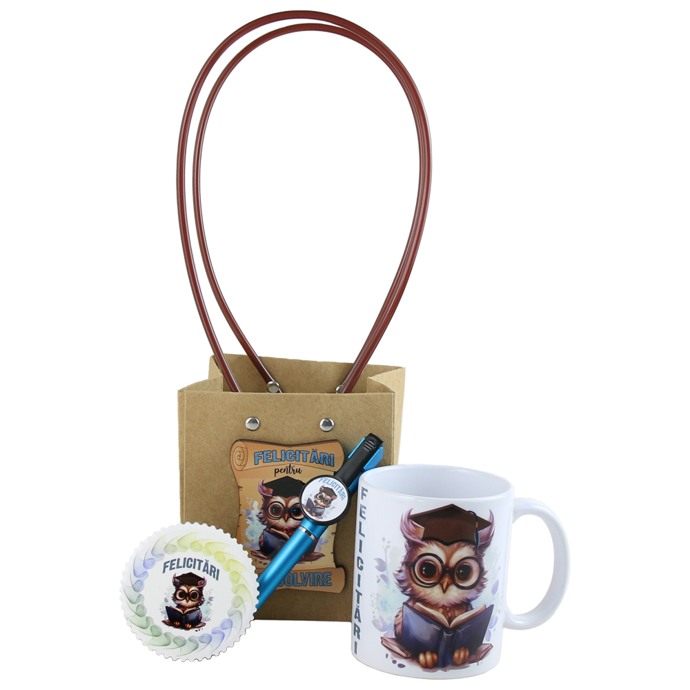 Set cadou de Absolvire 4 piese – Cana, magnet, pix touchscreen cu punga cadou, Albastru