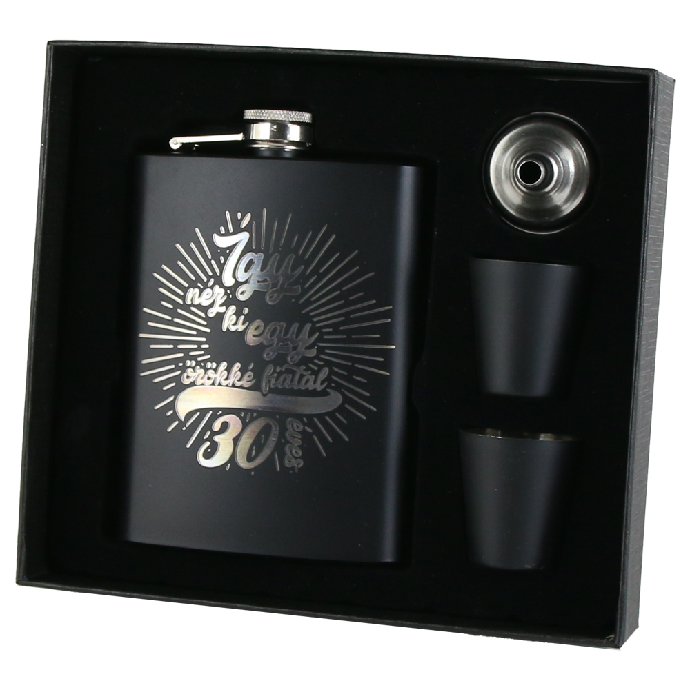 Set cadou „Igy nez ki egy orokke fiatal 30 eves”, Plosca cu palnie si 2 pahare