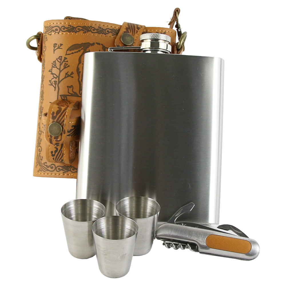 Set cadou pentru barbati Plosca cu briceag si 3 pahare