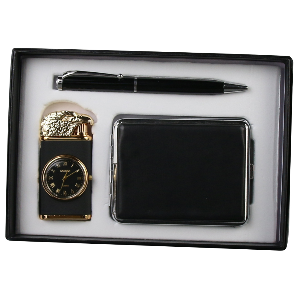 Set cadou pentru barbati, Portcard cu pix si bricheta cu ceas
