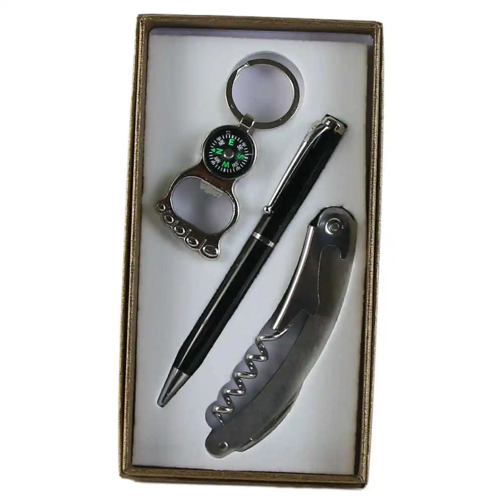 Set cadou pentru barbati, Tirbuson cu pix si busola (deschizatoare sticle)