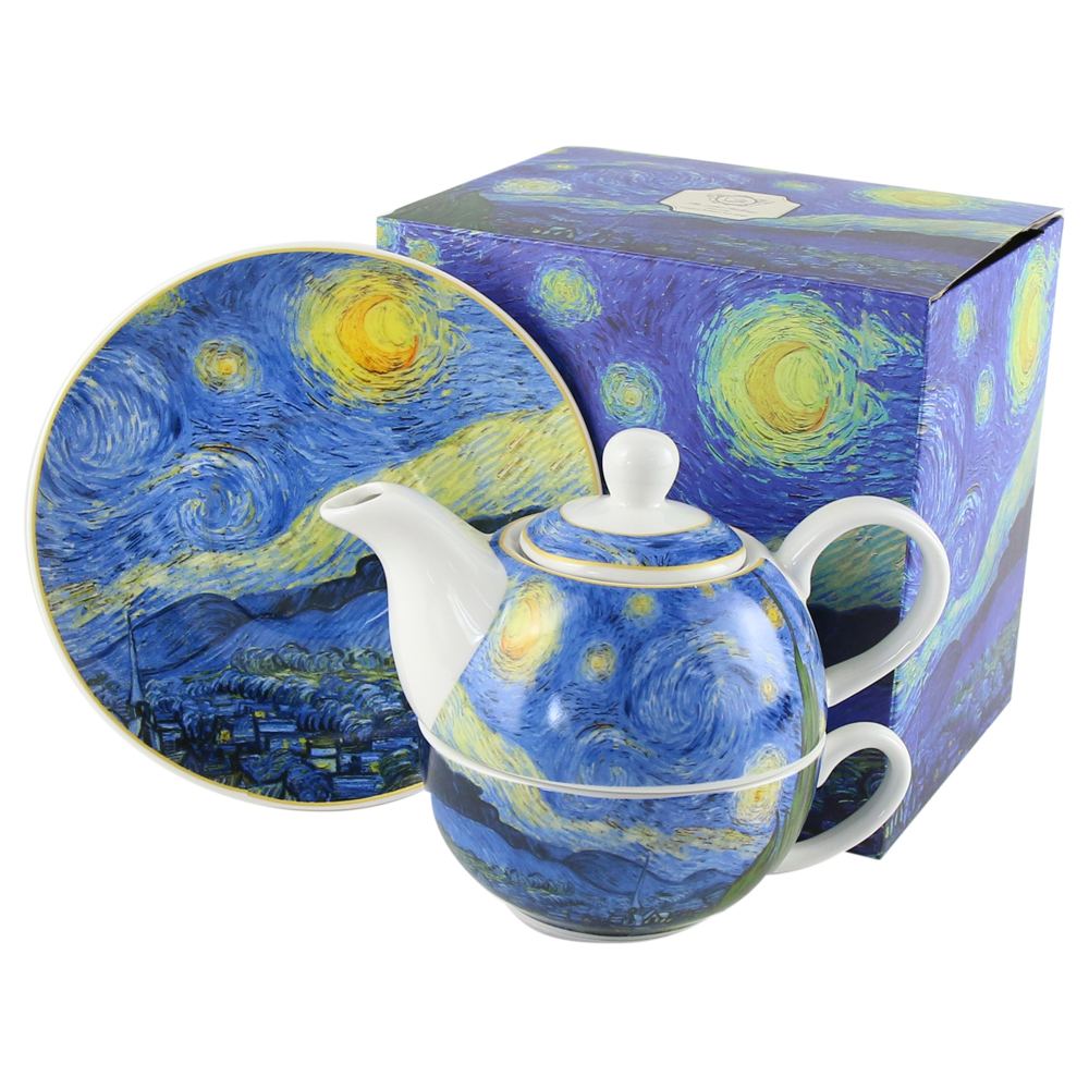 Set ceainic cu ceasca, farfurioara si infuzor metalic 350 ml/300 ml „Starry Night” de V. van Gogh, in cutie decorativa