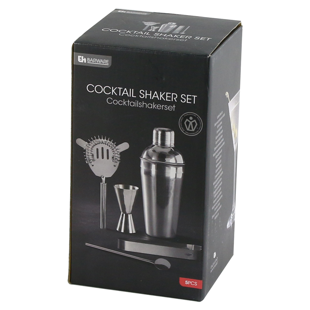 Set Cocktail Shaker, 5 piese, argintiu
