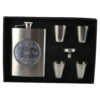 Set plosca cu palnie si 4 pahare din inox, „A legjobb Ferjnek”, in cutie eleganta