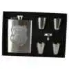 Set plosca cu palnie si 4 pahare din inox, „A legjobb Fonoknek”, in cutie eleganta