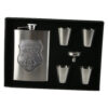 Set plosca cu palnie si 4 pahare din inox, „A legjobb Testvernek”, in cutie eleganta