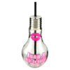 Paharul in forma de bec cu capac infiletabil si paie este cu siguranta un cadou surprinzator si haios pentru persoanele dragi. Paharul este din sticla transparenta. are un capac filetant din metal si pai negru din plastic si cu diferite mesaje pictate pe