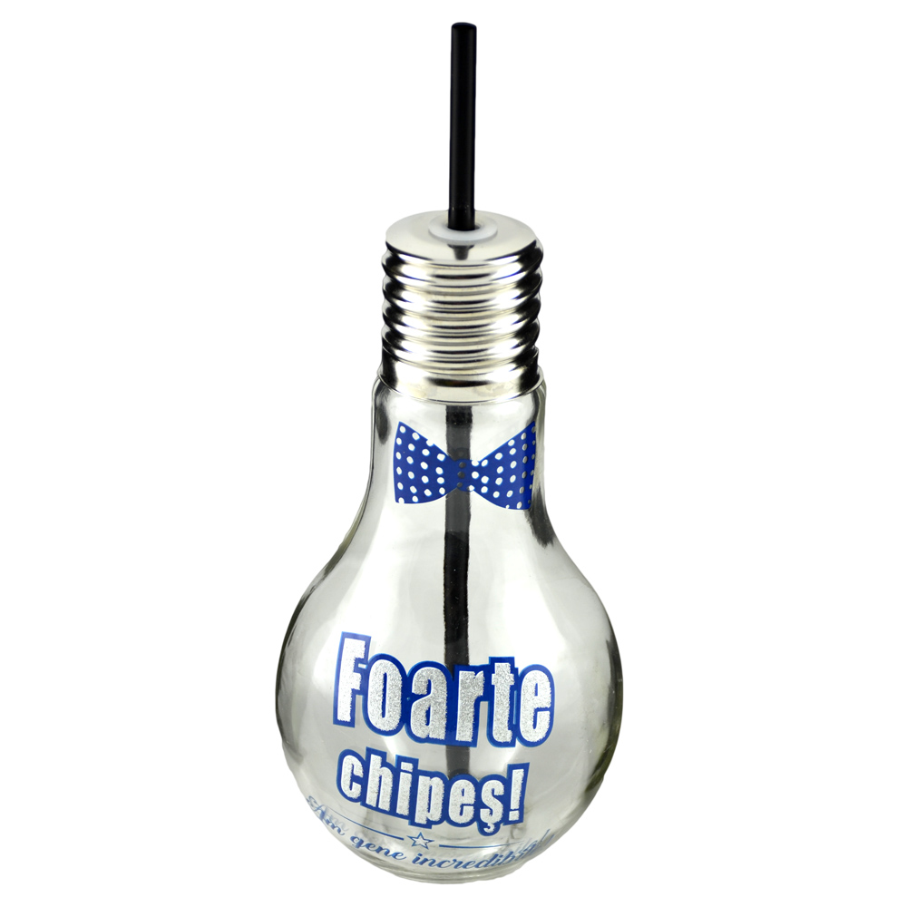 Sticla cu pai, forma bec „Foarte chipes!”, 9×22 CM