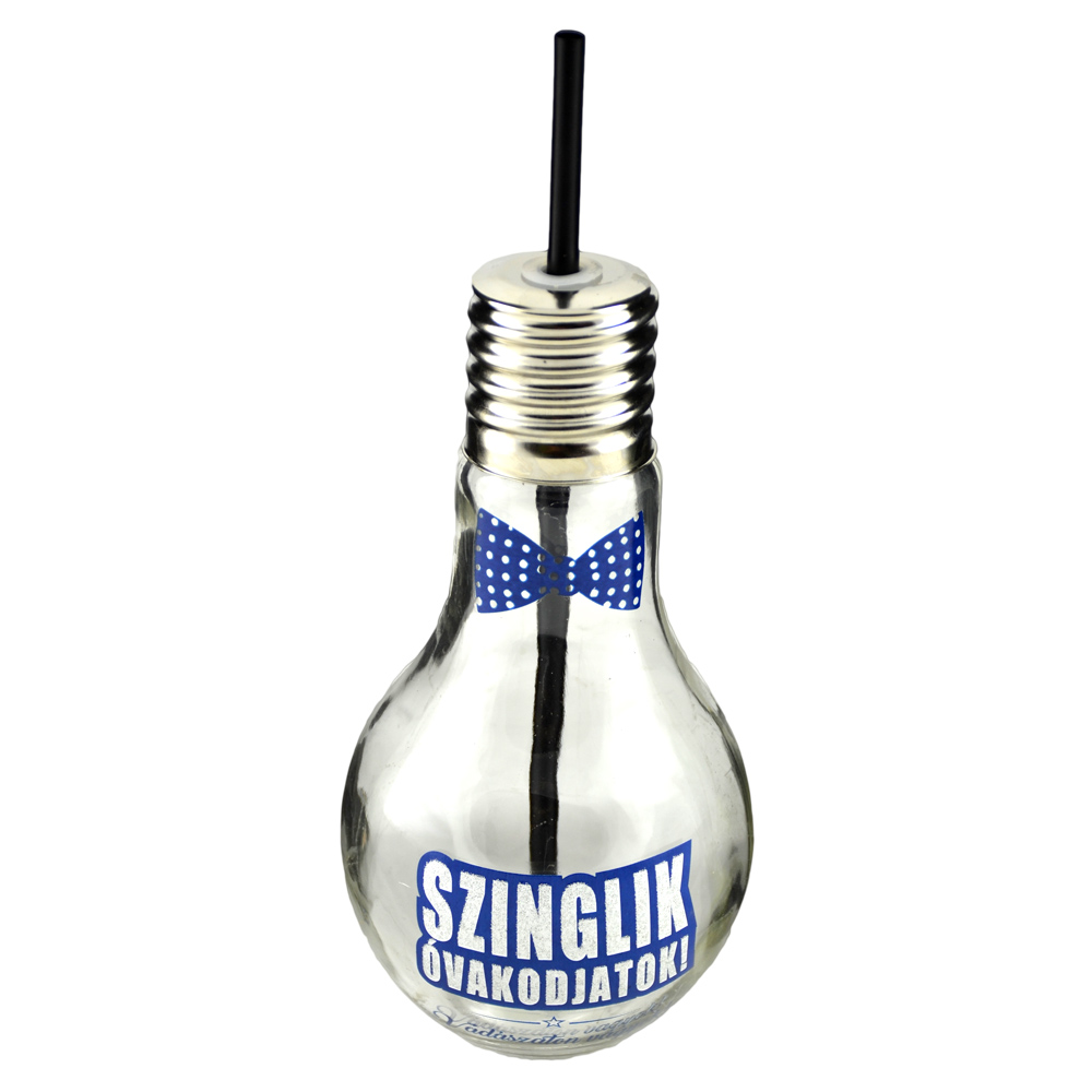 Sticla cu pai, forma bec „Szinglik ovakodjatok!” 9×22 CM