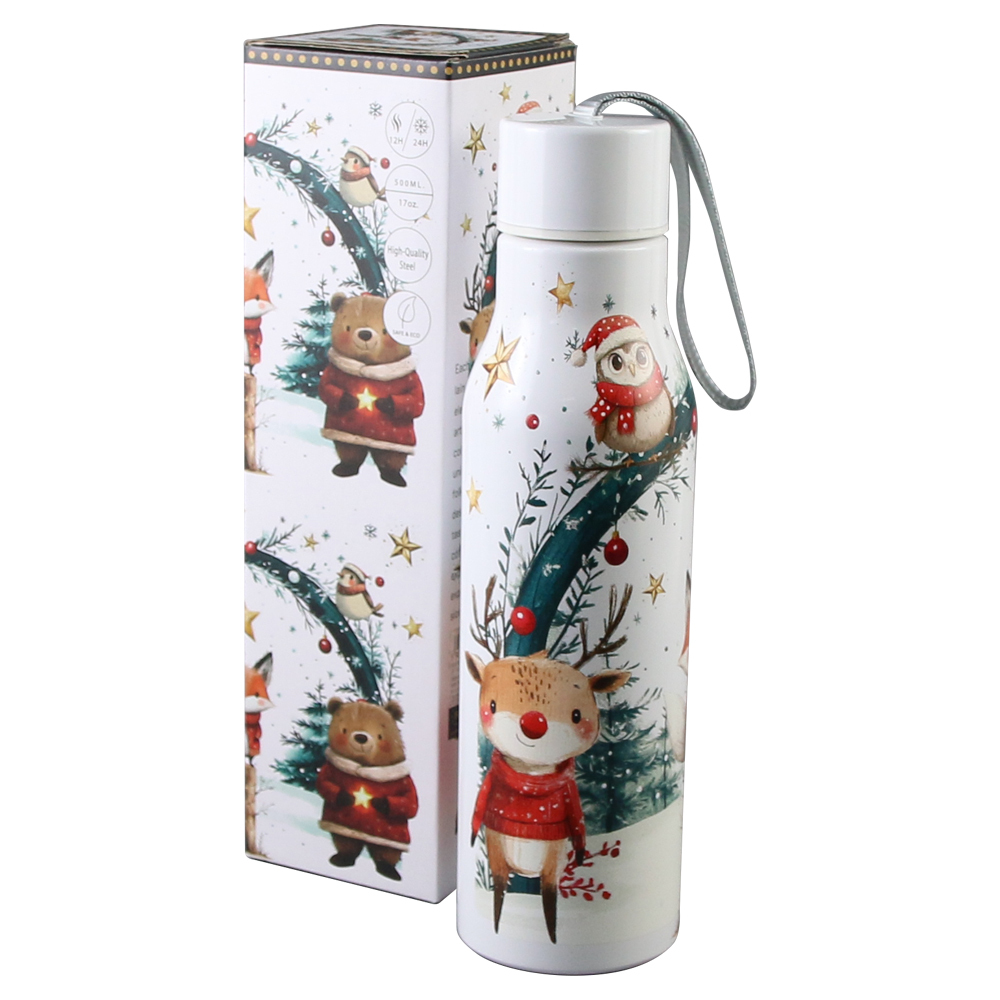 Sticla termos 500 ml, Christmas Cuties, in cutie decorativa, Animalute de Craciun