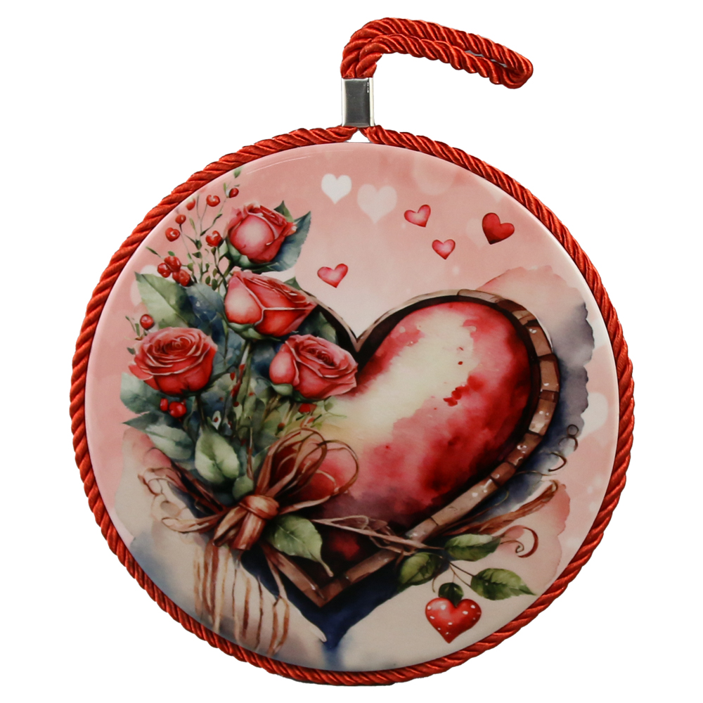 Suport decorativ din ceramica, 17 cm, cu buchet de trandafiri si inima