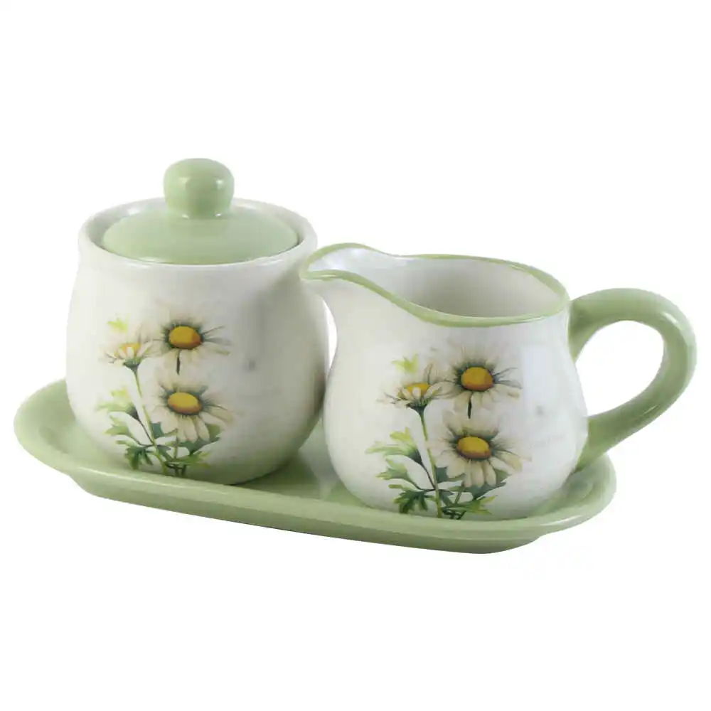 Suport din ceramica cu zaharnita si cana lapte Margarete, 22×11 CM