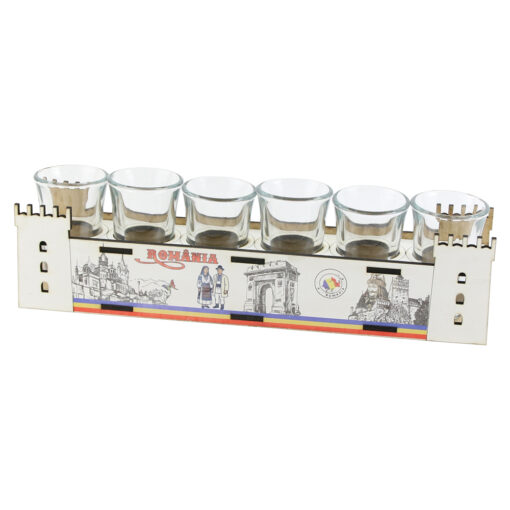 Suport din lemn „Romania” cu sase pahare 28 CM