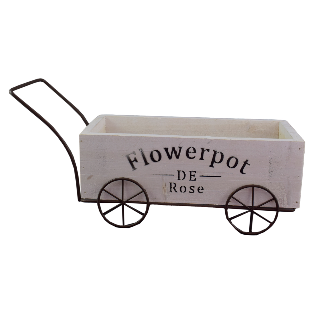 Suport flori din lemn si metal Caruta „Flowerpot” 36 CM