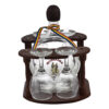 Suport lemn cu sticla si pahare de tuica in forma de locomotiva