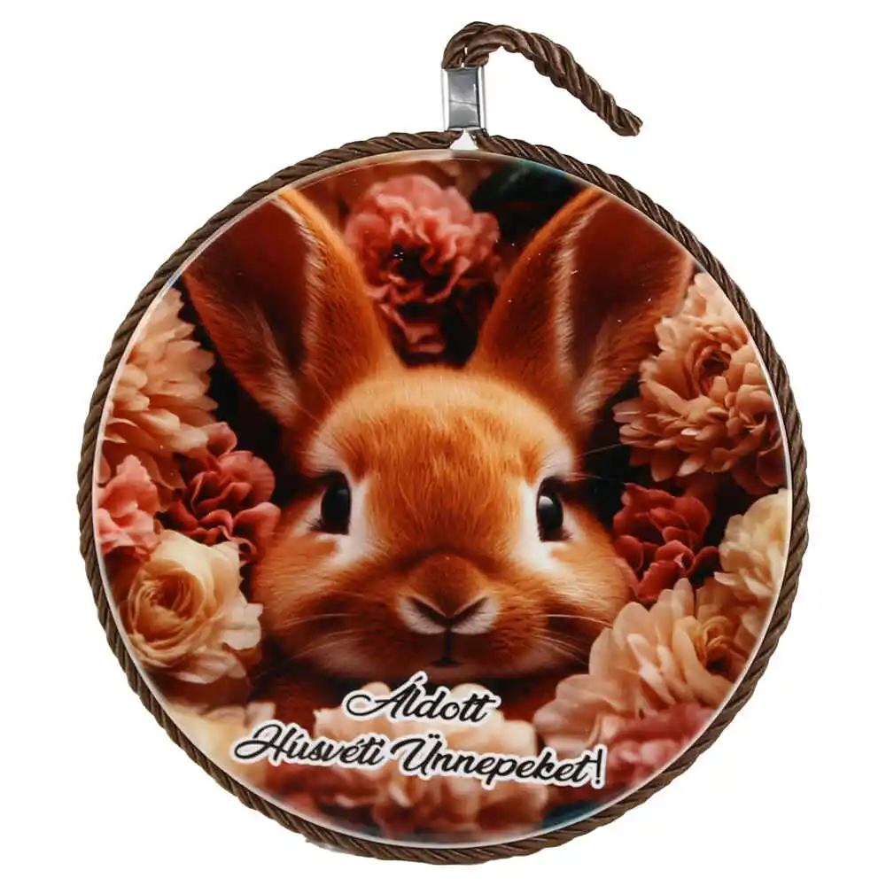 Suport oale decor din ceramica „Aldott Husveti Unnepeket!”, 17 CM, Iepuras