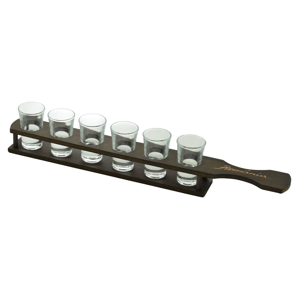 Suport pahare din lemn pentru servire. cu 6 pahare