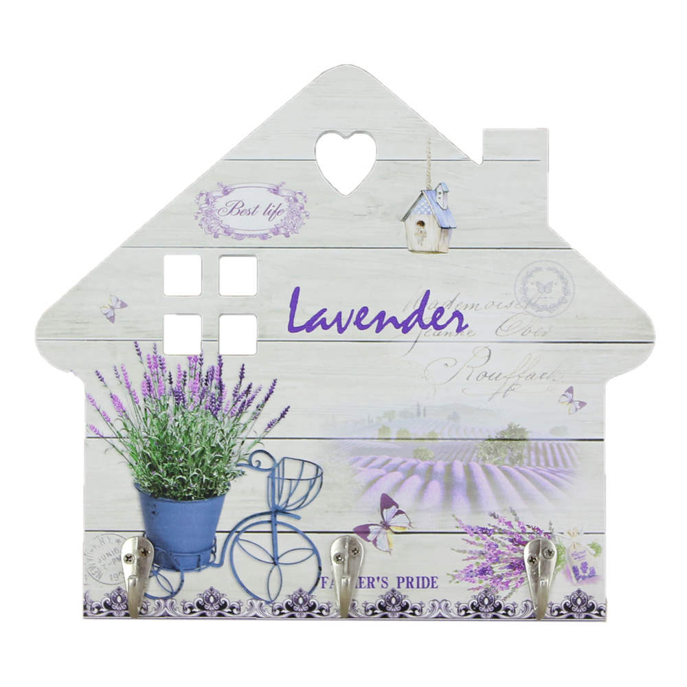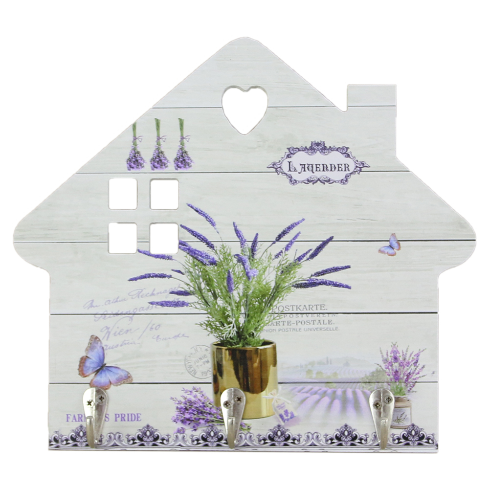 Suport pentru chei din lemn cu 3 carlige Casuta Lavender 25×23 CM