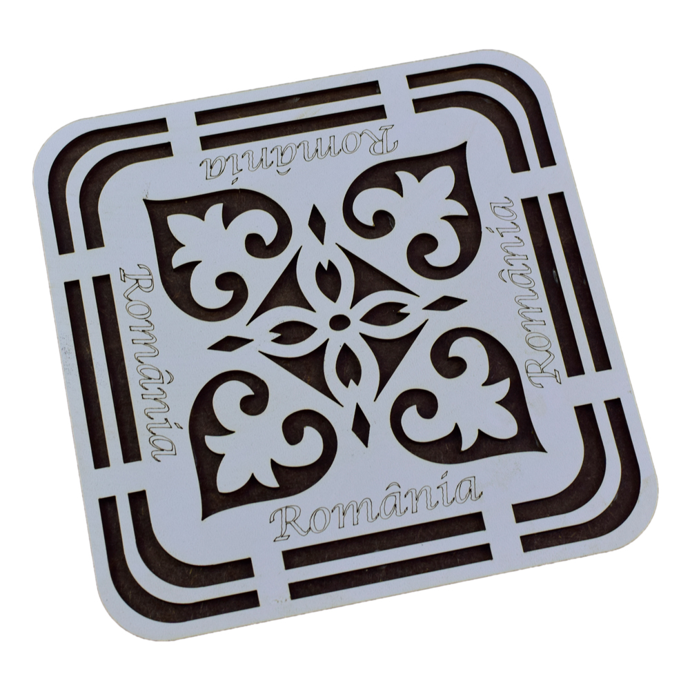 Respectivul suport realizat din lemn are un design traditional decorat frunze si inscriptia „Romania”. cadou potrivit pentru cei dragi de casa noua sau pentru cei care traiesc pe alte meleaguri. Suportul este ideal pentru a proteja masa sau blatul de lucr