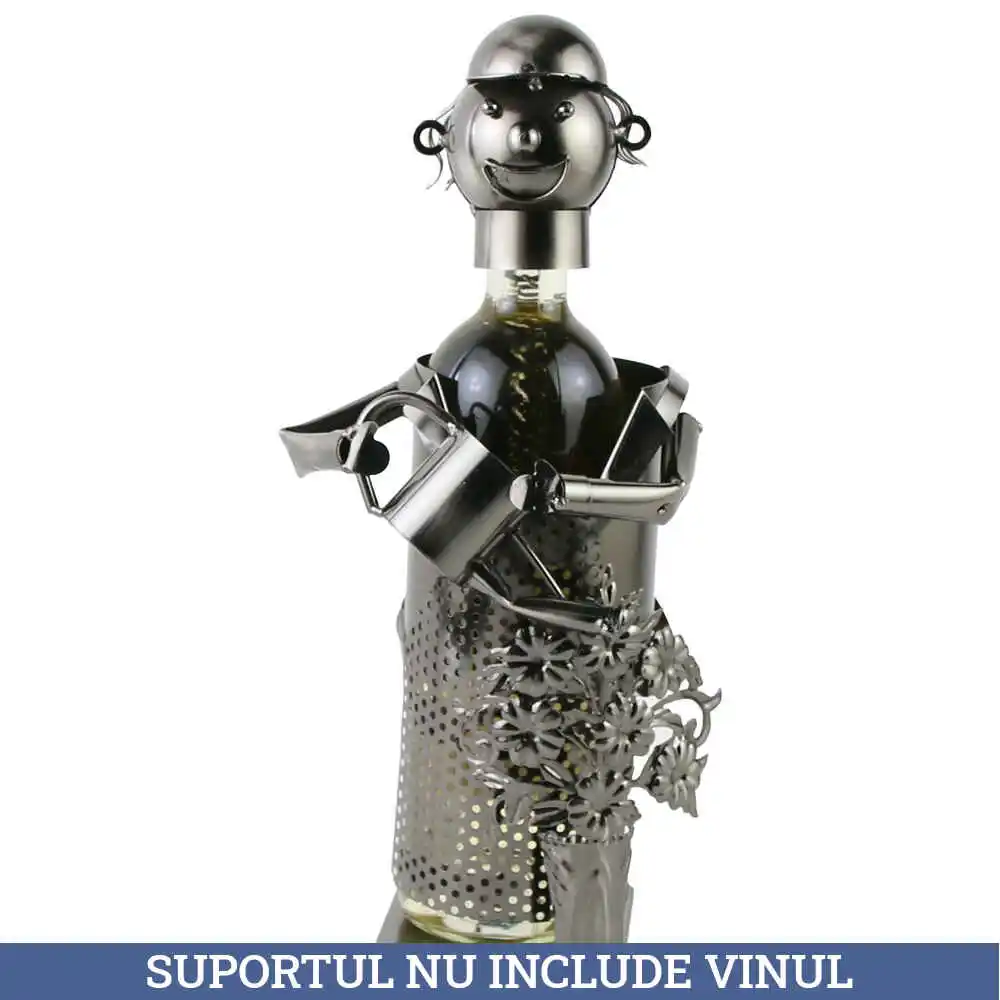 Suport sticla de vin, din metal, Gradinar, 14×33 CM