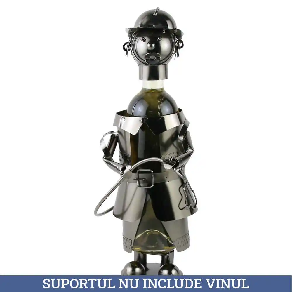 Suport sticla de vin, din metal, Pompier, 15×38 CM