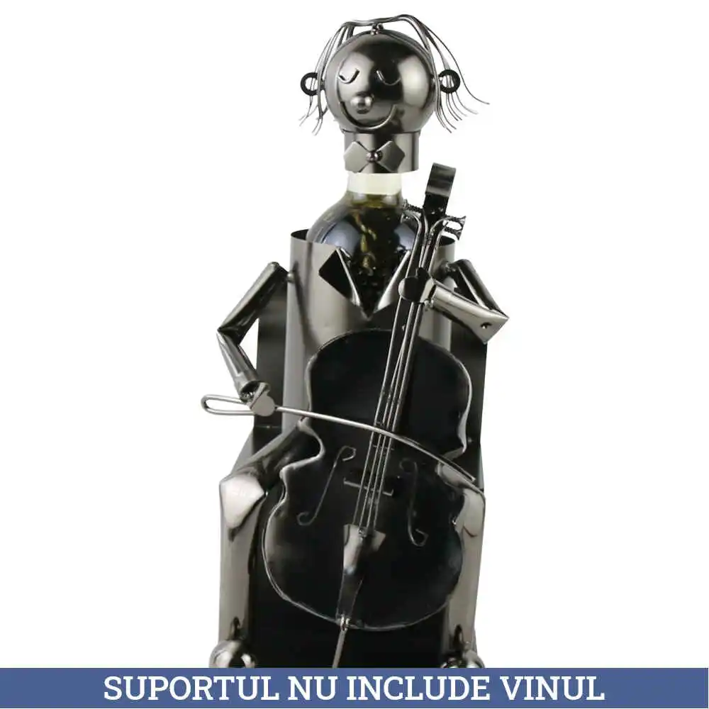 Suport sticla de vin, din metal, Violoncelist, 16×32 CM