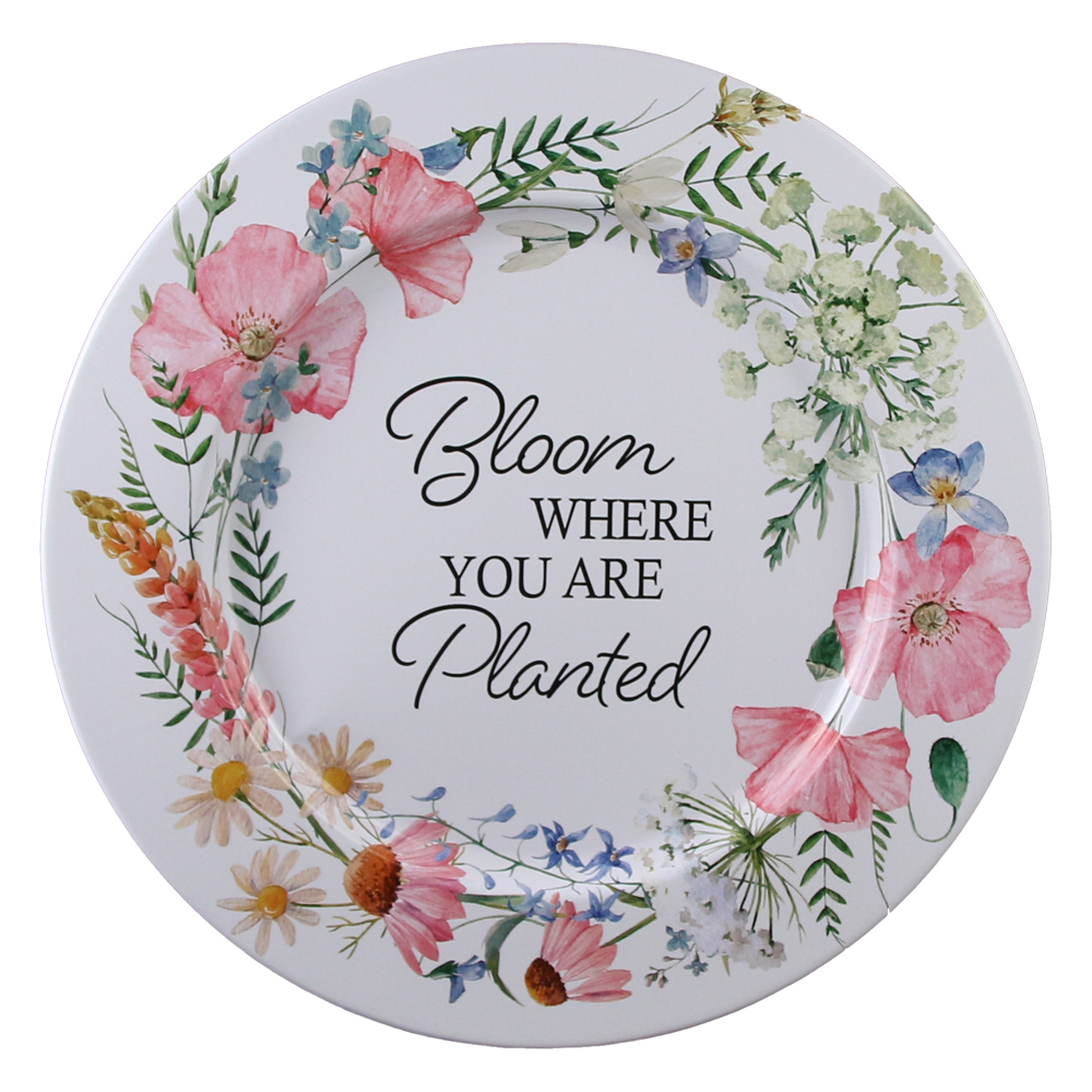 Tava servire metalica 33 cm, flori de camp „Bloom where you are planted”