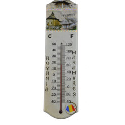 Un termometru este intotdeauna util. putand astfel sa verificati temperatura in casa sau in exterior. Acest termometru este realizat din plastic. poate fi agatat pe perete. are un design cu tema „Romania”. souvenir util si ideal pentru cei care traiesc pe alte meleaguri sau pentru turisitii care vor sa aiba o amintire despre tara vizitata.