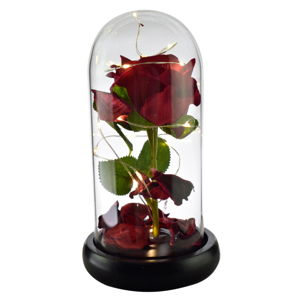 Trandafir in cupola de sticla cu lumini led 10×18 CM
