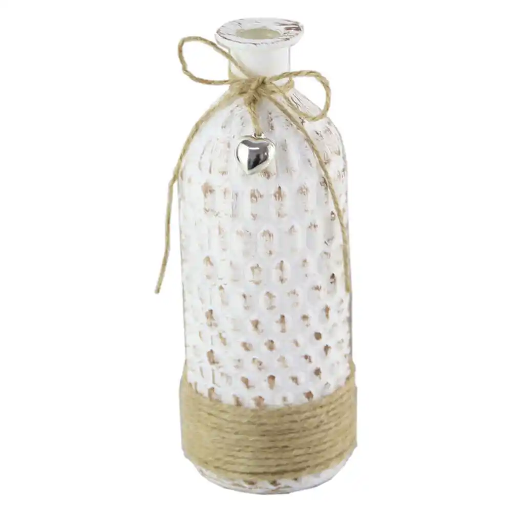 Vaza din sticla cu snur si inimioara 20 CM, Alb