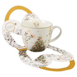 Ceasca cu farfurie din portelan, Around Christmas Tree, 250 ml, in cutie decorativa, Brad de Craciun