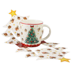 Set 2 cesti cu farfurii, din portelan, Christmas Tree, 270 ml, in cutie decorativa, Brad de Craciun